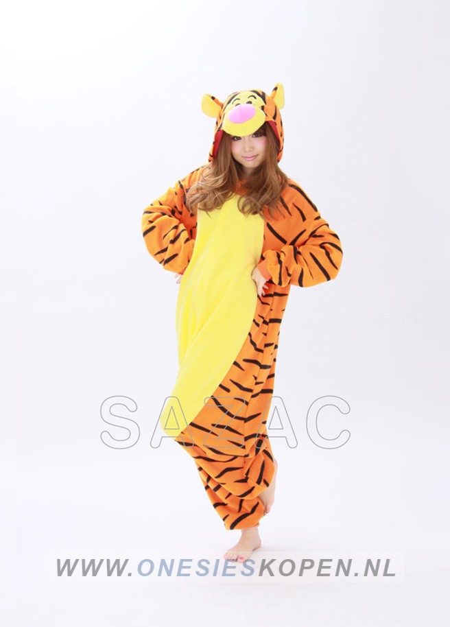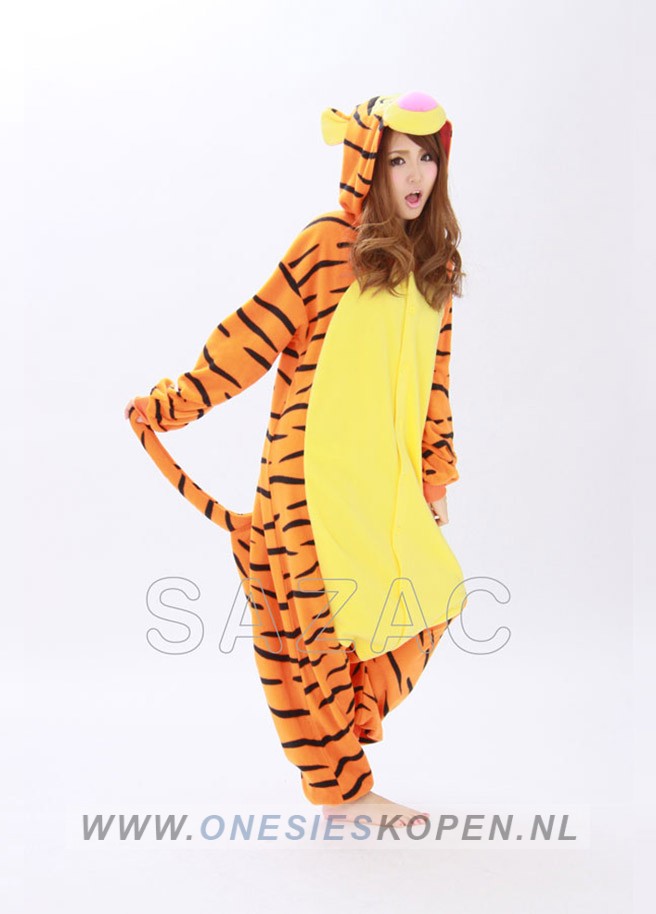 De Tijgertje (of eigenlijk Teigertje) jumpsuit is gemaakt van een mooie en zachte fleecestof. Aan de voorkant is Teigertjes lichtgele buik verwerkt en aan de achterkant van de jumpsuit zit zijn kenmerkende staart. De capuchon is Teigertjes gezicht met oortjes en zijn lieve snoet. De binnenkant van de capuchon is gevoerd met roze stof. Deze animaljumpsuit is ideaal als kostuum op een themafeestje of tijdens carnaval, als festivaloutfit of gewoon lekker als pyjama/huispak voor op de bank.
